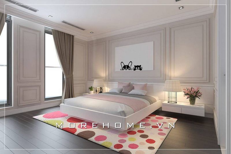 Giường ngủ gỗ công nghiệp màu trắng tại phòng ngủ bé gái hiện đại