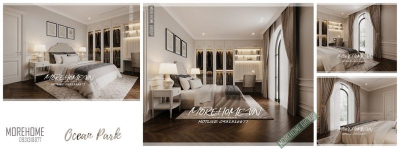 Mẫu thiết kế phòng ngủ có tông màu trắng làm nền cho các căn hộ, nhà phố, biệt thự phong cách tân cổ điển.
