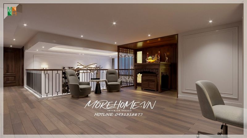Việc sắp xếp bố trí nội thất khoa học trong hành lang tầng giúp tăng giá trị sử dụng và thẩm mỹ cao.