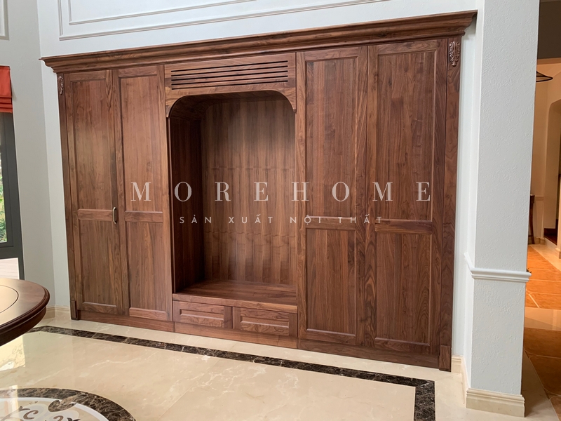 Kệ tivi gỗ óc chó hiện đại nhỏ gọn đẹp là sản phẩm phù hợp cho các không gian nội thất phòng ngủ.
